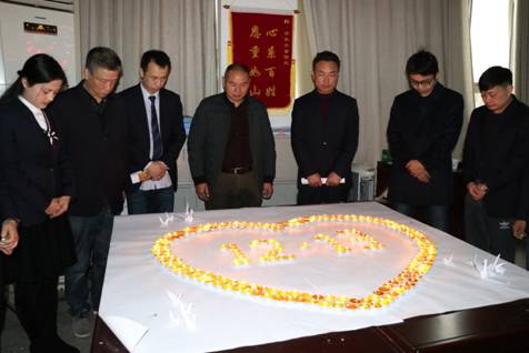工作人员点燃摆出“12.13”造型的蜡烛