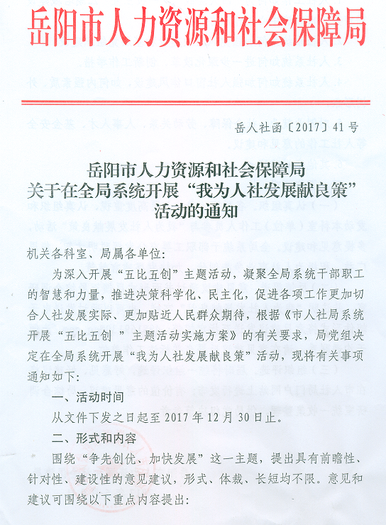 关于在全局系统开展“我为人社发展献良策”活动的通知