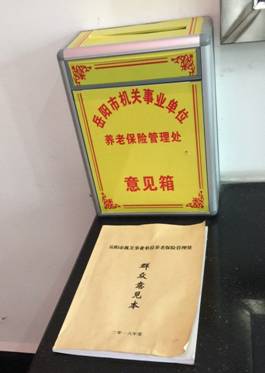 服务窗口柜台处设置的群众投诉意见箱和意见簿