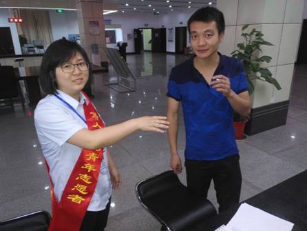 我处志愿者劝阻前来服务窗口办事的人员的吸烟行为